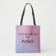 Judge me when you are perfect saying tote bag. Pink and purple gradient with an abstract design. Cute tote bag with a little sass.