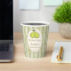 The perfect pair pear Sage green stripes retro elegant bridal shower monogrammed paper cups, retro bridal shower personalized paper cups, fall bridal shower personalized table decor, earthy stripped bridal shower cups, pear bridal shower, yellow bridal shower paper cups, grand millennial bridal shower personalized party supplies printed paper cups, coquette bridal shower personalized custom paper cups the perfect pear bridal shower printed paper cups