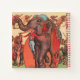 Vintage Downie Brothers circus poster showing performing elephants with women and trainer hanging by head from elephant's mouth.