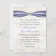 Elegant cream coloured wedding invitation. Lovely graphics of a satin looking periwinkle blue ribbon, at the top, of the invitation, against a pale cream damask background. A sparkling heart shaped diamond decorates the middle of the ribbon for a rich elegant finish. All text is in black or blue script and is ready to personalize for your special day. Matching wedding products available.
