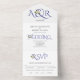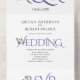 Periwinkle blue initials, ampersand, rose wedding all in one invitation