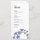 Periwinkle Blue Modern Floral Wedding Dinner Menu
