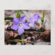 A pair of purple periwinkle (Vinca minor) flowers blooming on the forest floor.