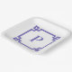 Periwinkle Greek Key Square Border Monogram Paper Plate