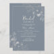 Vintage, elegant, boho, floral periwinkle dusty blue bridal shower invitation with sophisticated wildflowers and trendy handwritten script.