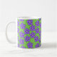 This mug has a spring design of a field of periwinkle flowers on a green background.