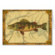 Cette impression illustre une image artistique d'un poisson perché jaune. L'arrière - plan affiche une carte géographique vintage dans les tons beiges clairs. Le cadre marron ressemble à un motif en bois ancien avec des fleurs jaune-rouge aux bords. Un grand ajout à votre collection de pêche !