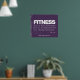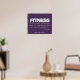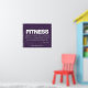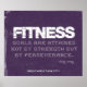 This purple motivational poster for fitness success features an exercise quote in white thread and cross-stitch on a denim purple background. The fitness quote by motivational author Felicity Luckey reads: FITNESS GOALS ARE ATTAINED NOT BY STRENGTH BUT BY PERSEVERANCE. ~ Felicity Luckey