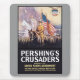 This vintage World War One poster features General John Pershing on horseback, leading marching troops and the American Flag forward. It declares, “Pershing’s Crusaders -- United States Government First Official American War Picture”. Celebrate American and WW1 history with this digitally restored vintage war poster product from The War Is Hell Store.