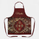 The lower half showcases a rich oriental rug–inspired design in dark red and cream, adding warmth, tradition, and visual depth. The contrast between the calm upper panel and the ornate lower pattern makes this apron both stylish and distinctive.