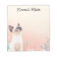 A lovely Persian cat looks upward as it sits against a peach ombre background surrounded by delicate flowers. The text at the top of the notepad can be personalized.
