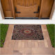 Welcome guests with the vibrant charm of the Persian Sunniest Framed Ethnic Semicircle Mandala Doormat. This distinctive doormat features a bright Persian circular mandala art embraced by a vintage red and yellow ethnic semicircle frame. Crafted with high-quality sublimation printing on a 24"w x 36"l mat, it resists fading and offers a full rich colour that won't fade. The doormat's 1/8" smooth fleece with white edge bounding adds a touch of elegance, while the sturdy latex action backing ensures a non-slip grip
