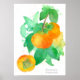A botanical poster decorated with a branch of a persimmon tree with bright orange ripe fruit painted with watercolor and accented with watercolor spatter dots. The botanical name and scientific names are in a soft gray text. In the Language of Flowers the persimmon symbolizes joy, healing, and transformation.
