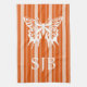 Persimmon Victorian Stripe with Butterfly Monogram Kitchen Towel