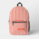 Persimmon and White Vintage Striped Personalized Name Printed Backpack