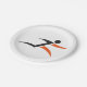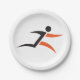 A black and orange icon symbol of a person running. This design looks really effective on these Paper Plates