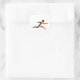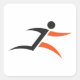 A black and orange icon symbol of a person running. This design looks really effective on these Stickers