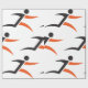 A black and orange icon symbol of a person running. This design looks really effective on these Wrapping Paper