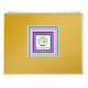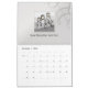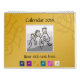 A quite simple personal calendar, yet with ornamental decor and a certain shine to the solid frame colours. Add your monthly photo and text. The wide frames are either golden, silver, pink, purple, teal or blue. Look for other versions with fewer colour alternatives. There is one square photo and one text line for each month. If you want more text it's possible to enter a regular line break. The front page photo can be a 13th photo, or you can reuse one of the other photos. Text and photos can easily be customized.