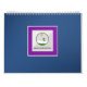 A quite simple personal calendar, yet with ornamental decor and a certain shine to the solid frame colours. Add your monthly photo and text. The wide frames are either blue, purple and silver. Look for other versions with different colour alternatives. There is one square photo and one text line for each month. If you want more text it's possible to enter a regular line break. The front page photo can be a 13th photo, or you can reuse one of the other photos. Text and photos can easily be customized.