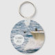 A customizable keychain with the picture of the front of a boat going fast over the water.