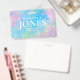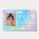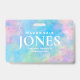 Create your own business office employee badge whilst reinforcing your personal brand. Employee badge features a modern textured abstract art painting in turquoise, pink, green and yellow with white typography and white frame for you to upload corresponding employee photo.