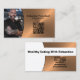 Faux brushed copper sets off the background of this business card design featuring a photo placeholder on the left with template name and title on the right. The back includes a coordinated design and colours with text fields for the business name and details. Replace the placeholder photo with your vertical format photograph and replace the QR code with yours. Fill in the template fields or click customize to select a font style, size, and colour you like.The placeholder photo is courtesy pexels.com.