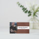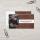Brown leather sets off the background of this business card design featuring a photo placeholder on the left with template name and title on the right. The back includes a coordinated design and colours with text fields for the business name and details. Keep or replace the placeholder photo with your vertical format photograph and replace the QR code with yours. Fill in the template fields or click customize to select a font style, size, and colour you like.The placeholder photo is courtesy pexels.com.
