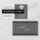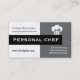 Personal chef minimalist eye-catching grey, white, black business cards featuring a white chef cap - toque with a fork, spoon and knife on black background and the text “Personal Chef” in a black band. Perfect professional design for head cooks, personal chefs, culinarians, chef de cuisine, executive chef, chef manager.