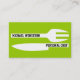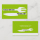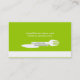 Personal chef minimalist business cards lime green white, featuring a white knife and a fork on lime green background and text in black. Perfect for head cooks, personal chefs, chef de cuisine.