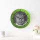 Personal Custom Photo and Text Lime Green Frame Large Clock
