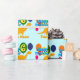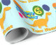 Happy Birthday 6 Years Party Balloons Dinosaur Wrapping Paper for Kids. A cute orange cartoon dinosaur Diplodocus saying "Happy Birthday" with rainbow colour birthday party balloons and a big number 6 (six). Add your name & age to make your special personalized dinosaur birthday wrapping paper for your gifts! This cool dino 6th birthday celebration paper wrap is fully customizable, add more images & texts. A great custom birthday party dinosaur gift paper idea with your name and age!