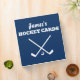 Personalized hockey card sleeve (sleeveless). Personalized name on front and custom background colour. Organize your sports player card collection. Ice hockey and puck design.