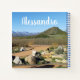 The front photo displays majestic mountain peaks with blue skies above, looking towards Stellenbosch in the background, while the foreground showcases a vegetable garden area enclosed with a thick white wall. The green trees next to the wall, and a road on the inside, with buildings a bit further back, add to the lovely scenery. The back photo features a rocky area with roads or pathways in the foreground, a quiver tree, an orchard with a green hill a bit further back, and mountains in the distance, all under a beautiful blue sky.