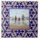 Here's a great personalized decorative addition to your kitchen, bathroom, outside patio, front door area, or anyplace in your home where a Spanish, Mediterranean style look fits right in. The tile pattern in deep indigo blue with repeating floral design makes an eye catching statement on this ceramic tile. Add your favourite personal photo and you have something that's going to bring you joy as long as it's in your home. If you have a design question or would like to see this design on another product, please feel free to contact me at jschmidtdesignworks@gmail.com.