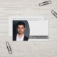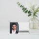 This business card design features a photo placeholder with template name and occupation. The back includes text fields for the business name, details and qr code. Replace the placeholder photo with your photograph on the front and your QR code on the back. Fill in the personalize fields or click customize to select a font style, size, and colour you like. Have the QR code link send potential clients to your website, client reviews, project photos or another specific link. The placeholder photo is courtesy pexels.com.