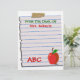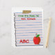 Top 10 Views Zazzle Award! Personalize this cute custom letterhead, "From The Desk Of", with any name on this fun, torn, lined notebook paper taped to a clean white background with ABC in red letters and a red apple illustration on the bottom. Or, just leave out the text entirely. Easily change the white background colour and text style and colour. Makes a great custom gift for teachers. Personalize some today! Great for Back To School!