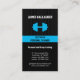 A graphically bold business card for a personal trainer, gym owner or coach. A silhouette of a bright blue dumbbell stands out against the rich black pinstripe background. Your title or business name sits in the striking blue bar underneath with your contact information below against rich black. Add any extra information on the attention-getting back. Available in alternate colours with matching products.