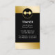 Personal trainer business cards with gold coloured barbell with emblem and gold coloured design elements. Customize the white background colour or personalize the text to make this your own. Designed for personal training service, workout gym, or bodybuilding. The gold coloured accents give your business card template a classy and elegant look for a best first impression.