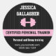A bold promotional sticker for a personal trainer, gym owner or coach. A silhouette of a pink dumbbell stands out against the rich black pinstripe background. Your title or business name stands out in the bright pink bar and your main contact information goes underneath. Available in alternate colours with matching products.