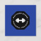 Simple dumbbell logo. Black, blue and white colour scheme.