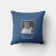 Personal Two Custom Photos Custom Text on Blue Throw Pillow