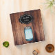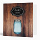 Barn wood image background with illustration of Mason Jar and label with name and text.