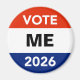 Make your own personalized campaign buttons and other materials for the presidential year primary and general elections of 2026. The default candidate is “ME”, but you can easily change that to any candidate you support or would like to encourage. Or, why not run yourself? You might have a great political future ahead… even as president in a couple of years if you’ll be 35 years old. Otherwise, it’s the Senate, the House of Representatives, or statewide office. Maybe even a local elective office. Get started now. Use the “click to customize further” template link to change font size or color. Even add a small graphic, if you wish.