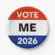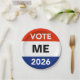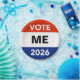 Make your own personalized campaign buttons and other materials for the presidential year primary and general elections of 2026. The default candidate is “ME”, but you can easily change that to any candidate you support or would like to encourage. Or, why not run yourself? You might have a great political future ahead… even as president in a couple of years if you’ll be 35 years old. Otherwise, it’s the Senate, the House of Representatives, or statewide office. Maybe even a local elective office. Get started now. Use the “click to customize further” template link to change font size or color. Even add a small graphic, if you wish.