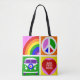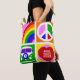 Personalise Pop Art Camper Van Life Tote Bag; peace and love and freedom. Personalize with your own text within the loveheart.