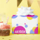 Fun and personalised kid's birthday age gift wrap with colorful dotty pattern.