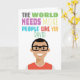 Cute Illustration of a male character with customisable name and text on the front that reads: "The world needs more people like you".