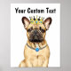 This illustration of a French bulldog wearing a crown can be customised with your own text to make it interesting. You can decide whether to put in a dog's name or a funny saying. It makes it a funny piece of art to put on the wall.