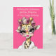 Bring a touch of sparkle and personality to any celebration with this Personalised Glamorous Giraffe Folded Greeting Card. Featuring a chic, fashionable giraffe with curlers in their hair and makeup on point, in bold, stylish colours, this card is perfect for anyone who loves a little whimsy with their glamour.